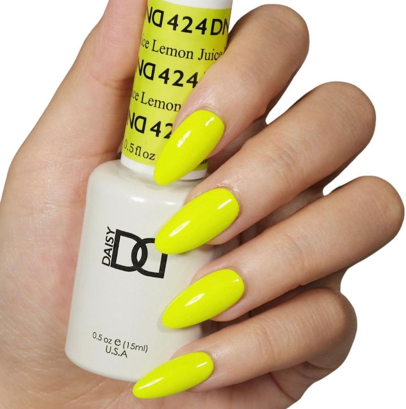 Five (5) DND Original Top Selling Neon Classics that you need to add to your collection- Lemon Juice DND #424, Pool Party DND #433, Spring Leaf DND 435, Terra Cotta DND #425, Neon Purple DND #507. The original salon famous neon shades all founded in 2011.