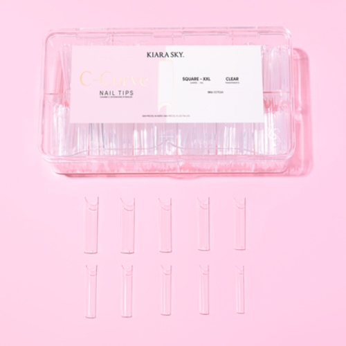"Say goodbye to shaping struggles and nail forms! With Kiara Sky's C Curve Tips, perfect nails are just a tip away! Featuring a pre-prepped application surface and a deep c-curve design, these tips are ideal for time-saving acrylic, gel, and dip powder application. Designed to offer the best in convenience, each pack includes 500 tips in 10 different sizes. Starting at Double XL, you can effortlessly trim Kiara Sky C Curve Tips down to the length that works best for you, your client, and your design. Available in natural and clear, Kiara Sky C Curve tips give your nails the most ideal structure and shape for strong nails without adding unnecessary bulk."