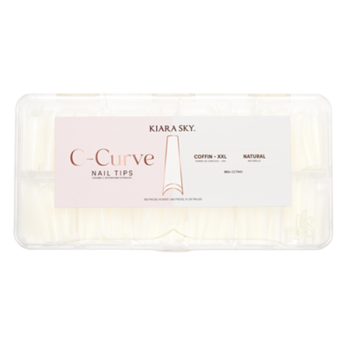 "Say goodbye to shaping struggles and nail forms! With Kiara Sky's C Curve Tips, perfect nails are just a tip away! Featuring a pre-prepped application surface and a deep c-curve design, these tips are ideal for time-saving acrylic, gel, and dip powder application. Designed to offer the best in convenience, each pack includes 500 tips in 10 different sizes. Starting at Double XL, you can effortlessly trim Kiara Sky C Curve Tips down to the length that works best for you, your client, and your design. Available in natural and clear, Kiara Sky C Curve tips give your nails the most ideal structure and shape for strong nails without adding unnecessary bulk."