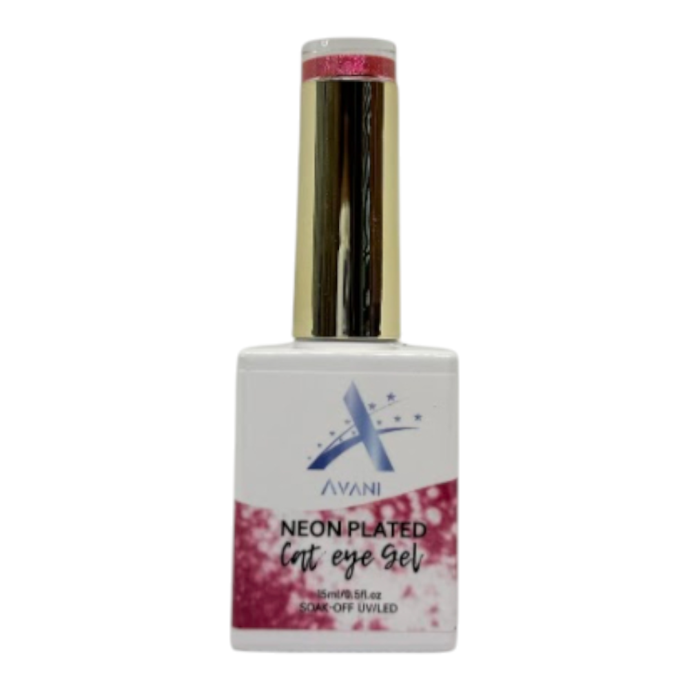 Avani Neon Plated Cat Eye Gel Polish delivers a bold, vibrant cat-eye effect with a dazzling neon shine. The magnetic formula reacts beautifully to light, creating a multi-dimensional, mirror-like glow that stands out day or night. Smooth application, long-lasting wear, and quick curing under UV/LED light make it perfect for salon and home use.