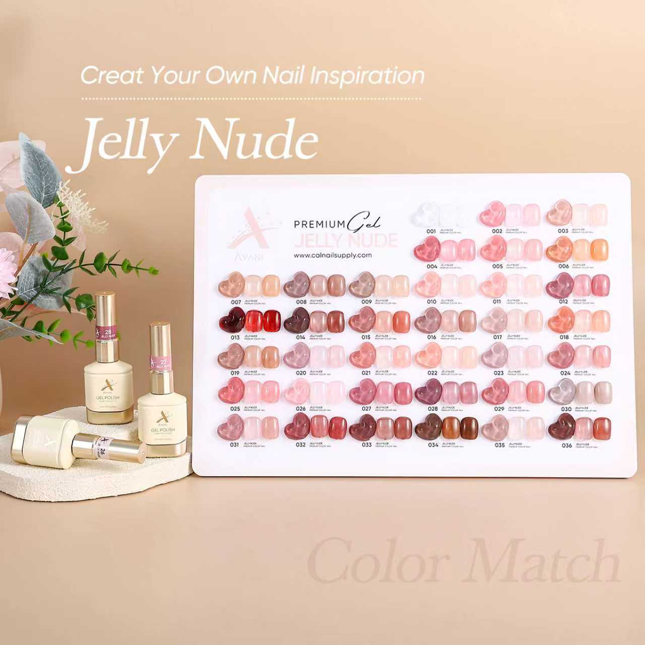 AVANI  full set inclue 36 bottles 12ml jelly nude gel nail polish set. Apply 1 layer, 2 layers and 3 layers are different effect, build up the color from clear to...