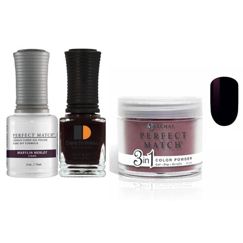 Perfect Match Matching 3-in-1 Set This Perfect Match Trio set comes with 3-in-1 Powder, Gel Polish and Lacquer. The gel polish is the bottle where you cannot see the color and...