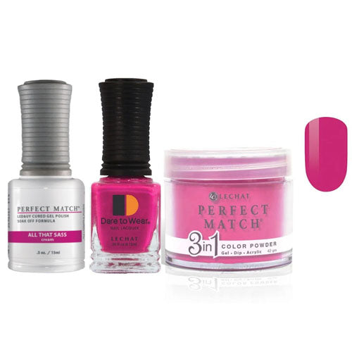 Perfect Match Matching 3-in-1 Set This Perfect Match Trio set comes with 3-in-1 Powder, Gel Polish and Lacquer. The gel polish is the bottle where you cannot see the color and...